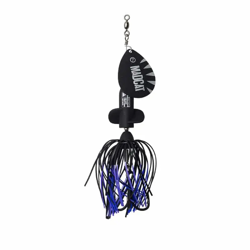 De volgende generatie MADCAT-spinners in aantrekkelijke kleuren. De MADCAT A-STATIC ADJ. SCREAMING SPINNER 3/0 65G SINKING BLACK DEVIL heeft zoveel meer te bieden dan andere, gewone spinners: het blad begint direct te draaien, het roterende lichaam heeft metalen ballen binnenin die continu rammelen en de spinner is A-STATIC: rond het elektromagnetische veld om te minimaliseren wat meerval kan schrikken. Plus: De spinners worden geleverd met een supersterke en ultrascherpe, 6-voudig sterke kwaliteitsdraden in maat 3/0. Let op: De rubberen coating kan tijdens het gebruik afslijten.