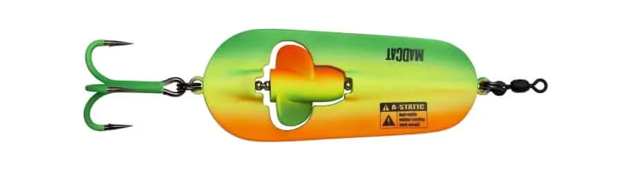 Nog een innovatie van MADCAT®: een rammelende lepel. DAM MADCAT A-Static Rattlin Spoon 3/0 110g zwemt als een lepel maar … heeft een roterend lichaam met kleine balletjes erin, om nog meer aandacht te trekken. Treble maat: 3/0. A-STATIC, wat betekent: met rubber bekleed, om het elektrische veld dat meervallen afschrikt te minimaliseren. Let op: de rubberen coating kan tijdens gebruik afslijten.