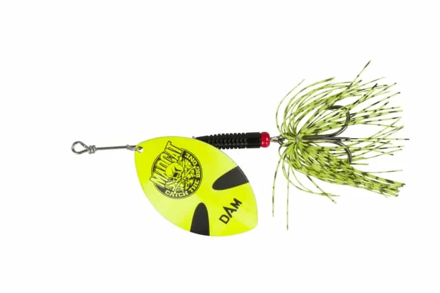 De MADCAT BIG BLADE SPINNER 2/0 55G SINKING FLUO YELLOW is een meerval spinner met extra groot blad, voor sterke trillingen. Met een extra dikke draad en een heavy duty dreg.