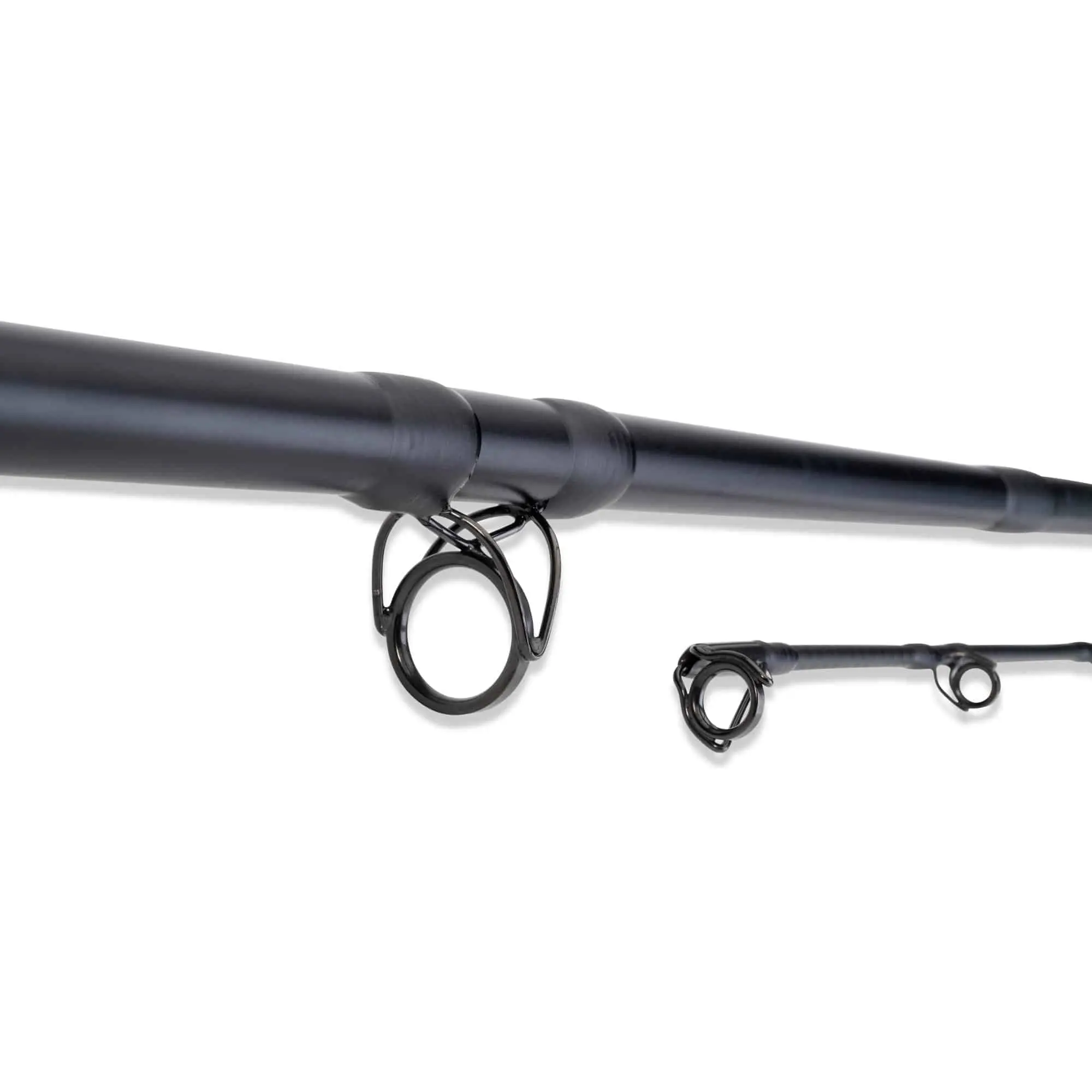 UNI CAT Black Out 2,70m / 250-1000g: Met de Uni Cat Black Out serie gaan we Back to the Roots en nemen we de positieve ervaringen van de toen legendarische Dream Fish met de nieuwste hengelbouwtechnologie mee in de ontwikkeling. Net als in het verleden vertrouwen we op een bijna onverwoestbare meervalhengel met een zeer gevoelige topactie. Dit garandeert een optimale beetregistratie en zorgt voor ongelofelijk speelplezier. In combinatie met de enorme krachtreserves van het handstuk kunnen we in lastige situaties druk opbouwen en tegelijkertijd uitstekende vechteigenschappen ervaren. Het vissen op meerval is vaak erg ruig, je moet heel snel en flexibel reageren op de meest uiteenlopende situaties op het water en je moet regelmatig van plaats wisselen. Bij conventionele SIC-ringinzetstukken kan de ene of de andere breuk optreden. Om dit tegen te gaan zijn de Knock Out hengels voorzien van 6-bar hardchrome ringen zonder inserts.