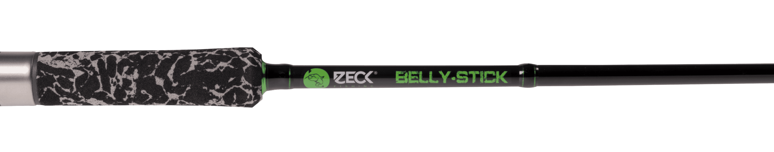 De Zeck Belly-Stick is een hengel die speciaal ontworpen is voor het vissen vanuit een bellyboat. Met zijn lengte van 165 centimeter en de korte achterhandgreep van 28 centimeter, onder de reelhouder is een ideale handling met deze Zeck Belly Stick hengel gegarandeerd. Je kunt de Belly-Stick gebruiken om zowel kunstaas tussen 50 en 150 gram te werpen, maar ook verticaal vissen met fireballs en zware loodkoppen tot 200 gram. Met deze Zeck bellyboot hengel kan je zowel met een molen als met een reel vissen omdat de geleideogen dicht genoeg op elkaar geplaatst zijn. De lichte en zeer gevoelige blank gaat bij een hoge belasting tot in het handvat parabolisch krom maar biedt zeker een enorme krachtreserve om alle grote meervallen de baas te kunnen zijn naar verloop van tijd.Onze teamvisser Jean-Christophe Conejero was in staat om een meerval van 274 centimeter te slim af te zijn met de Belly Stick in de testfase, die het onofficiele wereldrecord vertegenwoordigt. Nooit eerder werd een grotere meerval gemeten en officieel bevestigd. De Zeck Belly-Stick is afgebouwd met een Fuji DPS M/18 molenhouder en 6+1 K-Concept geleideogen met een startoog wat een diameter van 30mm heeft. De hengel is een delig en heeft een transportlengte van 165cm. De achterkant van het handvat heeft een lengte van 28cm. Deze hengel is afgewerkt in een mat zwarte coating en een fraaie camouflage handvat