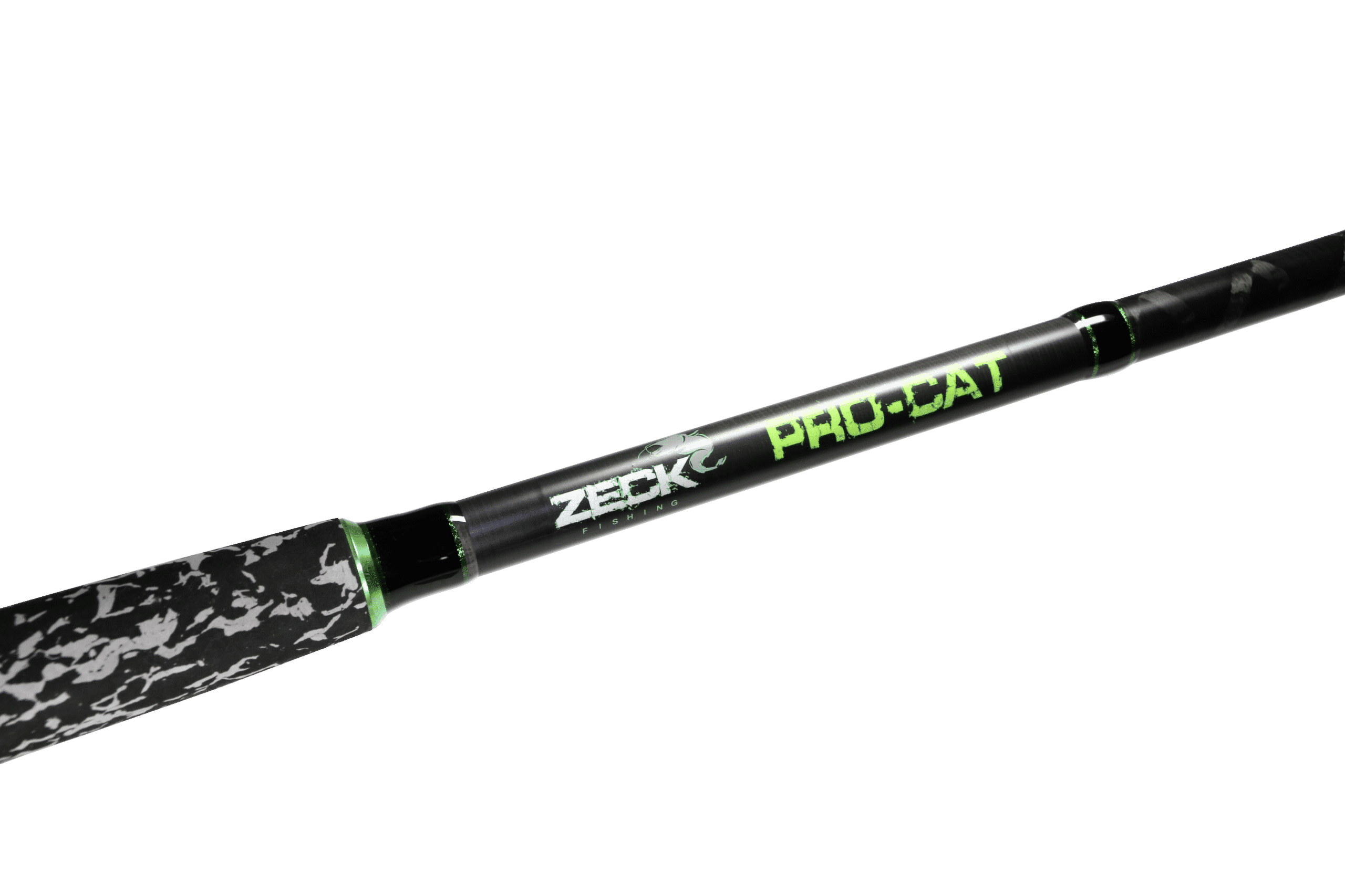 Met de nieuwe Zeck Pro-Cat Short 3 meter is Zeck ook de meerval vissers van dienst die graag op middel afstanden vissen en gebruik willen maken van zachtere meerval hengels om meer van de dril te kunnen genieten. De Zeck Pro-Cat Short and Soft hengel ziet door zijn dunne blank en slanke uiterlijk er erg gelikt en nobel uit. Niettemin is de blank van deze Zeck meerval hengel en de gebruikte componenten ontworpen voor compromisloos praktisch gebruik en blijft er een robuuste hengel overeind ondanks zijn slanke verschijning. Deze lichte hengel weegt maar 480 gram en heeft een zachte actie wat zorgt voor geweldige drilplezier, zelfs bij kleinere vissen. Ondanks dat deze Short and Soft hengel van Zeck zeer fijn is afgebouwd heb je nog steeds genoeg kracht in de ruggengraat, zelfs als je staat te drillen met grote meervallen. Afhankelijk van de hoogte van de hengel toppen kan je ontspannen met de Short en Soft tot ongeveer 200 meter lijnen afspannen zonder dat deze het water raken. Als de hoofdlijn in het water loopt, bijvoorbeeld met steenmontages zijn zelfs grote afstanden geen enkel probleem met deze meervalhengel. De Zeck Pro-Cat Short and Soft is afgebouwd met een Fuji DPS H/22 molenhouder en 10+1 Seaguide geleideogen met een startoog wat een diameter van 25mm heeft. De hengel is 2 delig en heeft een transportlengte van 155cm. De achterkant van het handvat heeft een lengte van 42cm. Deze hengel is afgewerkt in een mat zwarte coating en een fraaie camouflage handvat