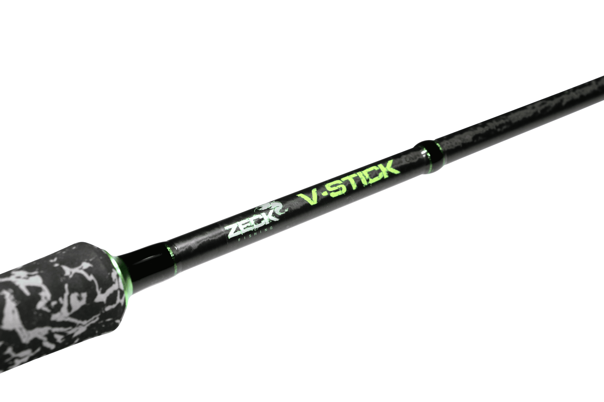 De Zeck V-Stick is een van de meest bekende hengels om vanuit de bellyboat of boot actief op meerval te vissen. Als je op zoek bent naar een gevoelige maar zeer robuuste verticale hengel dan heb je nu de perfecte meerval hengel gevonden bij deze Zeck V-Stick. Deze lichtgewicht Zeck meerval hengel weegt slechts 260 gram. Deze hengel heeft zijn enorme krachtreserves al ontzettend vaak moet bewijzen met het vangen van meervallen tot maar liefst 100kg zwaar. De Zeck vertikaal expert Philippe Careme, met wie Zeck samen de V-Stick heeft ontwikkeld was in staat om meerdere meervallen van meer dan 100 kilogram te slim af te zijn met dit actieve meerval stokje. Ondanks talloze situaties aan de rand van de belastingslimiet bleef de blank die uit een stuk Japanse koolstofvezel bestaat perfect intact. Het mooie van de V-Stick is het feit dat zelfs drils met kleinere meervallen van minder dan 130 centimeter leuk kunnen zijn, maar grote vissen kunnen ook gemakkelijk worden getemd met deze vertikaal hengel voor de meerval visserij. Met deze Zeck vertikaal hengel kun je aas en kusntaas tot meer dan 200 gram gewicht met veel gevoel vissen waarbij je een perfecte aascontrole hebt. De V-Stick is ook ideaal voor het vissen met een kwakhout op een scherpe manier. De Zeck V-Stick is afgebouwd met een Fuji DPS M/18 molenhouder en 6+1 K-Concept geleideogen met een startoog wat een diameter van 25mm heeft. De hengel is een delig en heeft een transportlengte van 172cm. De achterkant van het handvat heeft een lengte van 39,5cm. Kortom de ideale Zeck hengel om perfect vertikaal op meerval te kunnen vissen met kunstaas, fireball en andere toepassingen. Deze hengel is afgewerkt in een mat zwarte coating en een fraaie camouflage handvat